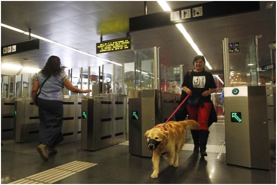 “Tras años de lucha, al fin se ha conseguido que los dueños de perros puedan viajar con sus mascotas en el metro de Madrid, como sucede en Barcelona y en la mayoría de las capitales y en las ciudades más importantes de Europa.”