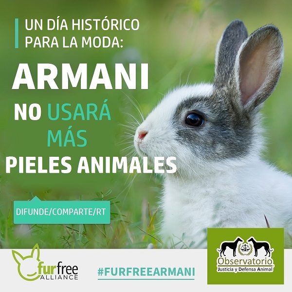 El Observatorio Justicia y Defensa Animal, organización española integrada en la coalición internacional Fur Free Alliance, califica como muy positivo el anuncio que hoy ha hecho la firma Armani de dejar de usar pieles de animales en la confección de sus productos. Con esta decisión, la prestigiosa marca de alta costura italiana satisface las cada vez más numerosas peticiones de consumidores que desean que la moda sea ética y sostenible.