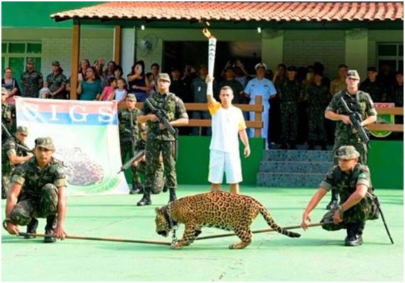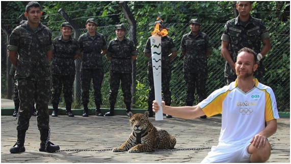Los organizadores pensaron que el hecho de que la llama olímpica pasara cerca de un jaguar, en la ciudad amazónica de Manaos sería una idea genial. Este animal no solo es el símbolo del lugar sino que también es la mascota olímpica del país, ya que “Ginga” es un jaguar que baila capoeira (una danza-arte marcial típica del país).
