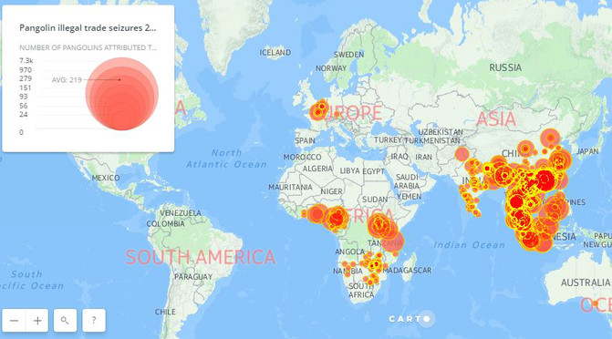 Un mapa, desarrollado por la EIA a principios de 2016, ha actualizado los datos sobre las capturas de pangolines. Los resultados muestran no solo un descenso de las poblaciones asiáticas debido a las presiones de caza insostenibles, sino también un crecimiento significativo del comercio de estos animales en África, sobre todo por sus escamas en los últimos ocho años.
