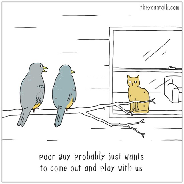 En su dibujos Jimmy Craig da sentido a un montón de situaciones y pone en palabras qué es lo que podrían decir los animales en cada momento. Los protagonistas son perros, gatos, pájaros, peces…Cualquier animal en cualquier situación le vale. Os dejamos una selección de 10 de sus cómics que esperamos que te diviertan y te hagan pasar un buen rato: