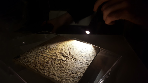 “Esto es una avispita”, aclara Pérez de la Fuente mientras desliza bajo la luz lo que solo parece ser una roca. Hay que tener el ojo entrenado para detectar que allí hay algo más que ha llegado a nuestros días después de sortear varios obstáculos.