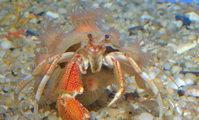 Sin embargo, las anémonas de mar se adhieren a la espalda de los cangrejos permanentemente y actúan como protector del vulnerable cuerpo de estos crustáceos. Se trata de un ejemplo claro de simbiosis ya que las anémonas también se benefician al encontrar un anclaje seguro y alimento.