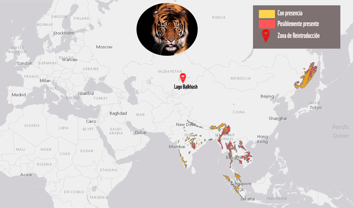 Esta semana, la República de Kazajstán, durante la EXPO de Kazajistán 2017, ha anunciado un plan para la reintroducción del tigre salvaje en el país. Si el programa tiene éxito, será el primer país del mundo en recuperar una especie totalmente extinguida en una región. Hasta ahora, sólo se ha logrado la reubicación de tigres dentro de las fronteras nacionales y en áreas ya habitadas por la especie.