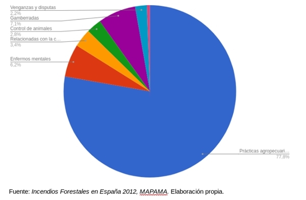 Como vemos, hay un porcentaje altísimo de incendio intencionado, es aquí cuando surge la solución “rápida” de terrorismo ambiental. Sin embargo, si vamos a la información publicada confirmamos que las motivaciones están muy alejadas al terrorismo o a la mafia sino al uso cultural del fuego.
