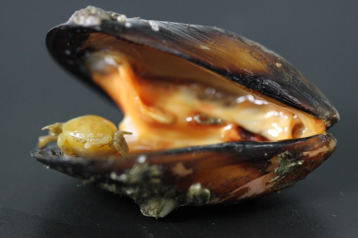 Un equipo de investigadores del Instituto de Ciencias Marinas de Andalucía (ICMAN), centro del Consejo Superior de Investigaciones Científicas (CSIC) en Puerto Real, Cádiz, advierte que la presencia de una especie de cangrejo de origen africano (Afropinnotheres monodi) que actúa como parásito en mejillones (Mytilus galloprovincialis) salvajes produce una pérdida media del 15 por ciento en su índice de condición, que es una relación entre el peso de la carne y el tamaño de la concha del mejillón.