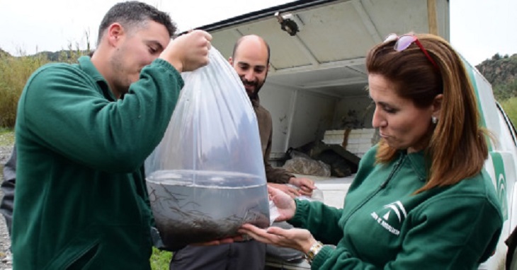 La Consejería de Medio Ambiente y Ordenación del Territorio ha liberado cerca de 670 kilos de angulas (inmaduros de anguila europea), de unos seis centímetros de longitud y un peso medio de 0,22 gramos en diversos ríos de la geografía andaluza entre los meses de febrero y marzo.