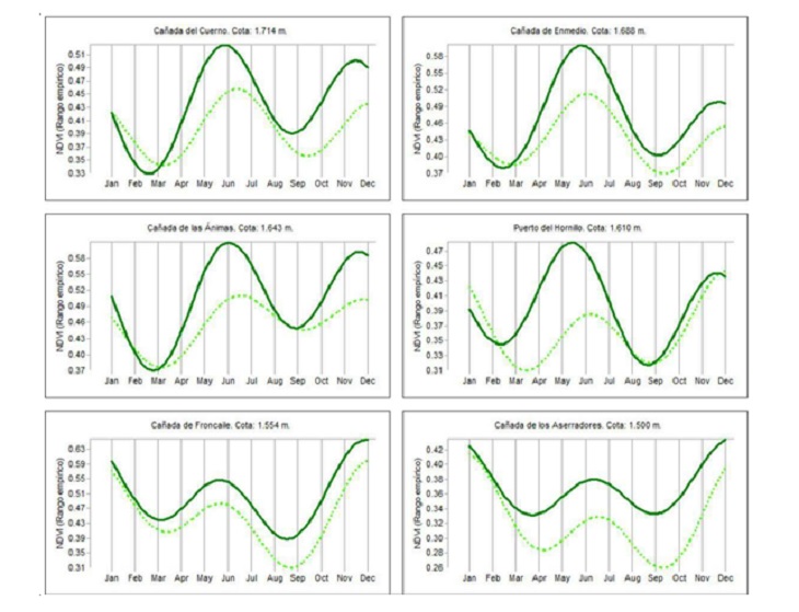 El análisis de tendencia estacional refrendó los resultados, pero arrojó un sintomático adelantamiento de la estación de crecimiento, es decir, un adelantamiento de la primavera, y un adelanto del inicio de la senescencia estival.