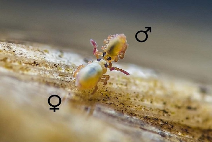 En la investigación, los autores han estudiado un colémbolo macho –un ejemplar de la especie fósil Pseudosminthurides stoechus muy bien conservado en el ámbar– que presenta las antenas modificadas para poder sujetar a la hembra durante la fecundación.