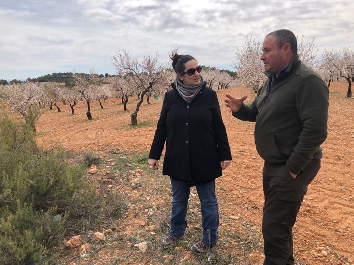 La secretaria técnica de la Asociación Agraria de Jóvenes Agricultores (Asaja) en Cuenca, Almudena Guijarro, se ha desplazado a la zona de Minglanilla y Villalpardo para conocer las impresiones de estos agricultores que llevan sufriendo el ataque de la avispilla del almendro durante las tres últimas campañas.