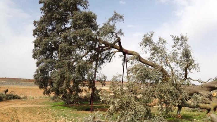 Tras una visita a este árbol centenario, los técnicos han procedido a realizar un diagnóstico técnico de la situación. Con el permiso de la propiedad se han desarrollado ya una serie de trabajos que han consistido en el apuntalamiento de la rama principal en pie, para evitar su caída, en un primer término.