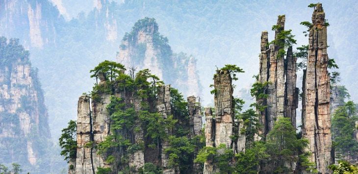 Se trata de Zhangjiajie, Geoparque mundial de la UNESCO, en el sur de China. Alberga formaciones rocosas gigantes, de lados cuadrados y pilares, envueltas en neblina, cubiertas de rica vegetación y cascadas que caen en la nada. Aunque están firmemente unidas al suelo, su tamaño y geometría les dan una apariencia de otro mundo que parece desafiar las leyes de la física.