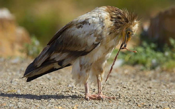 Esta ave es la más pequeña de las cuatro rapaces estrictamente carroñeras europeas y una de las más oportunistas en cuanto a su ecología trófica, alimentándose de cualquier tipo de carroña –mamíferos, aves, peces, reptiles y anfibios–, basuras domésticas, excrementos e insectos; en definitiva, pequeños trozos, lo que la hace «muy vulnerable» a los cebos envenenados, que, junto a las colisiones con aerogeneradores, son las principales causas de mortalidad.
