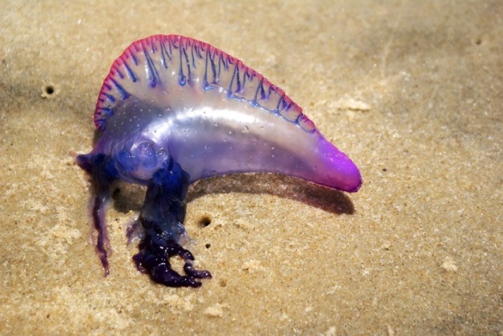 Se trata de la Physalia physalis, una especie de ‘falsa medusa‘ que resulta extremadamente tóxica por el veneno que desprenden sus tentáculos y cuya picadura puede ocasionar temblores, diarrea, vómitos y convulsiones, aparte de las habituales lesiones en la zona que ha mantenido contacto con el animal, ha informado el Consistorio en una nota.