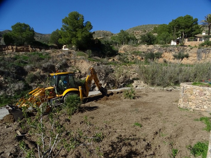 Para la eliminación de la caña se está procediendo primero a la trituración de la parte aérea de la planta, arrancando posteriormente las raíces y rizomas para su triturado igualmente, trabajos en los que ha colaborado igualmente el Ayuntamiento de Cartagena.