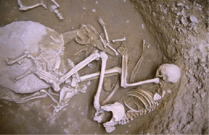 También se hallaron los restos de una mujer joven con la ofrenda de una cabra entera, dos zorros y un cuerno de bovino”, relata Ariadna Nieto Espinet, arqueóloga de la Universidad de Lleida y también coautora del estudio. La estructura 405 puso al descubierto el cuerpo de un individuo, posiblemente una mujer, acompañada de dos bovinos y dos canidos enteros. “Todavía desconocemos el motivo por el que solo algunas pocas personas habrían tenido el derecho o el privilegio de enterrarse acompañadas de este tipo de ofrendas, a diferencia de lo que ocurre con la gran mayoría de los enterramientos”, destaca la experta.