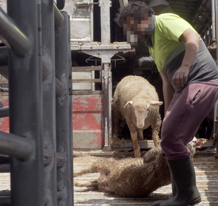 En las imágenes puede verse cómo los operarios recurren a la violencia para obligar a los corderos a moverse y los arrastran por las patas repetidamente.