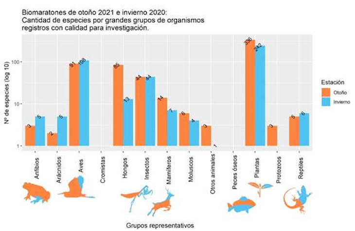 Por eso estos eventos son tan importantes, porque en un corto periodo de tiempo se les da un buen empujón a las bases de datos de nuestro país. Cuantos más participantes, mejores serán nuestros datos de biodiversidad. Muestra de ello es que en tan solo dos ediciones (Biomaratón de Otoño 2020 e Invierno 2021), 258 participantes han obtenido cerca de 15.000 observaciones de las cuales se han podido validar científicamente 7306 registros con 739 especies.