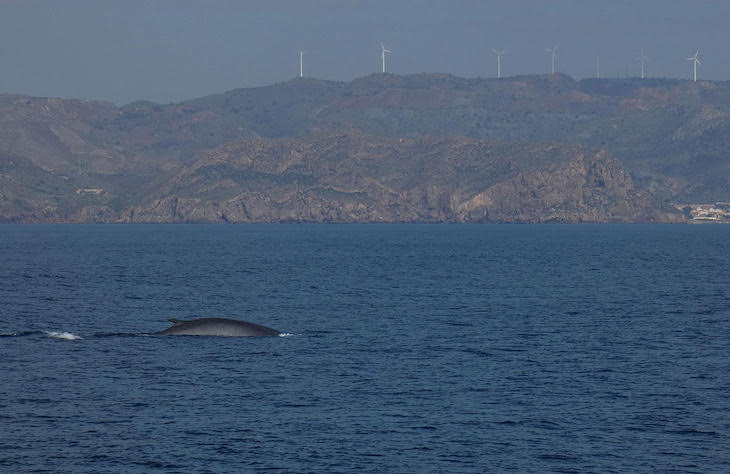 Durante los primeros días de navegación también ha podido ser observado un gran ejemplar de rorcual común frente a la costa de El Gorguel y Portman. El animal permaneció cerca de la embarcación Orca durante más de 1 hora; la presencia de esta especie en nuestra costa se asocia a su migración hacia el mar de Liguria, y no suelen permanecer durante mucho tiempo en una misma zona, ni parece que encuentren aquí buenas zonas de alimentación, al menos hasta ahora.