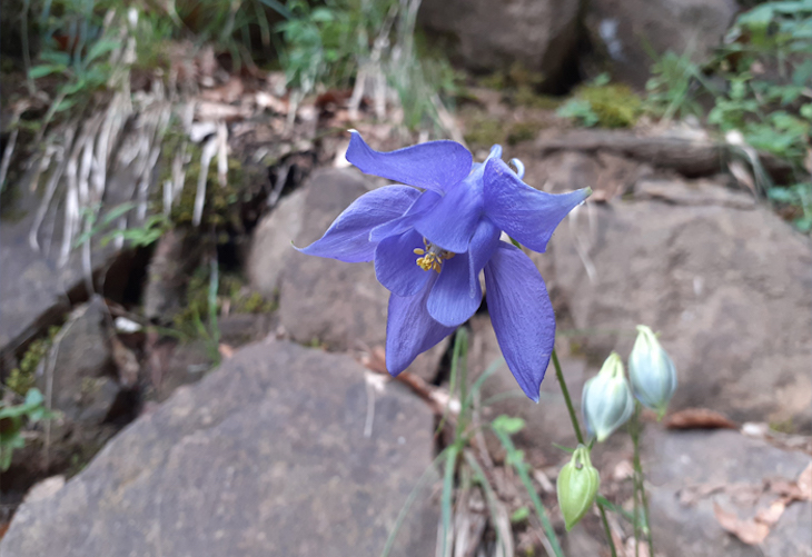 Aguileña (Aquilegia vulgaris): También llamada farolillos o clérigos boca abajo. Se la puede encontrar en robledales o prados a cierta altura, siempre con un grado alto de humedad.