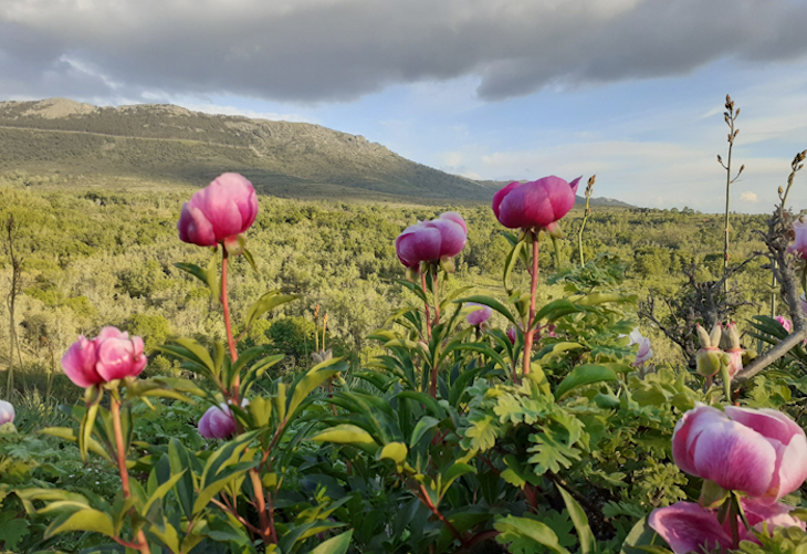 Peonía (Peonia officinalis) y matagallinas (Peonia broteroi). Son de las más características y llamativas de este ecosistema debido a su color y tamaño (casi un metro de altura). La matagallina es endémica de España y se diferencian por el color de los estambres, en la común son rojos mientras que en la matagallinas es amarillo. Ambas son tóxicas.