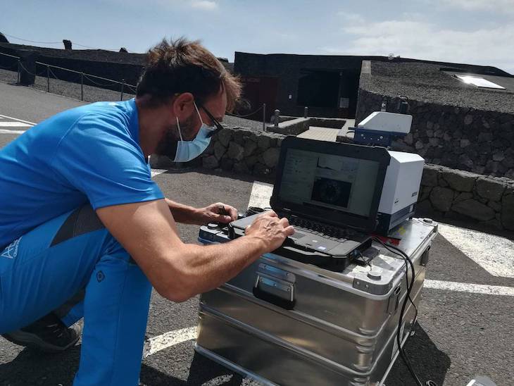 Para ello, AEMET ha instalado un ceilómetro (una herramienta láser usada para determinar la altura de la base de nubes) en el centro de visitantes del volcán San Antonio, en Fuencaliente, al sur de la isla, un lugar idóneo para las observaciones por su baja nubosidad. Para complementar el registro de datos, el Grupo de Óptica Atmosférica de la Universidad de Valladolid ha instalado junto al ceilómetro un fotómetro de la red AERONET de la NASA que permite determinar propiedades ópticas y físicas de los aerosoles volcánicos.