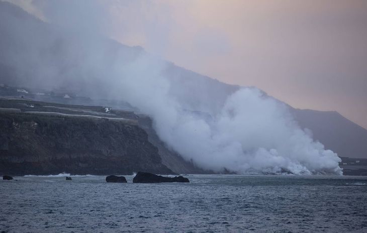 La lava del volcán de La Palma ha comenzado a ganarle terreno al mar hasta formar un delta de unos 500 metros de ancho y, de momento, el viento mantiene alejada de la costa la columna de vapor de agua y de gases posiblemente tóxicos generada por el contacto entre el magma y el océano.