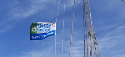 14 – Colocación de una bandera simbólica del derecho fundamental a un medio ambiente sano en el buque escuela Juan Sebastián Elcano.