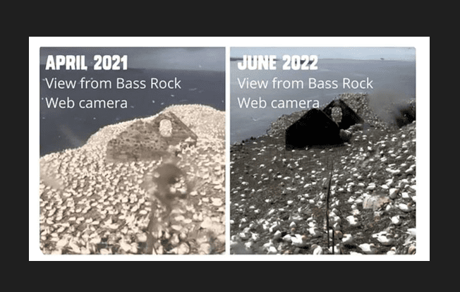 Durante el brote de 2022, en las colonias del noroeste de Europa se contaron un total 20.531 adultos muertos en apenas dos meses, calculándose una tasa de mortalidad de la población nidificante del 74%.