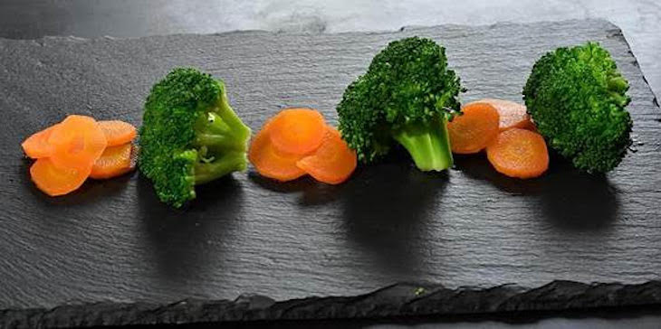 El brócoli se debe enjuagar y trocear, la zanahoria una vez pelada se corta en tiras finas (con una mandolina) o en rodajas, los champiñones se deben limpiar bien (nunca mojarlos), eliminándoles la tierra que pueden tener y si no son muy frescos, quitarles parte del pie. Luego se laminan muy finamente.