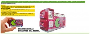 En la comunidad gallega se encuentran ubicados otros dos stands de la Campaña “Reciclar es vida”: concretamente en los Halls de la Escuela Universitaria de Ingeniería Tecnica Industrial de Vigo. Rúa Conde Torrecedeira, 86., en VIGO y de la Escuela de Ingenieía Forestal, en el Campus Universitario A Xunqueira s/n, de PONTEVEDRA.