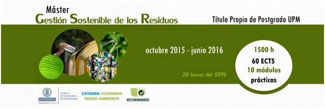 - Máster en Gestión Sostenible de los Residuos, programa propio de la UPM de 60 ECTS (1500 horas y de 6 a 12 meses de prácticas en empresas).