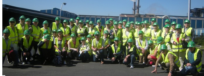 Acto seguido, el grupo se desplaza a la planta de reciclaje, tratamiento y elaboración de combustible, donde se procesa la basura convencional procedente de la recogida de los contenedores verdes genéricos, separando el acero, el aluminio y el vidrio, que se hacen llegar a la industria transformadora.