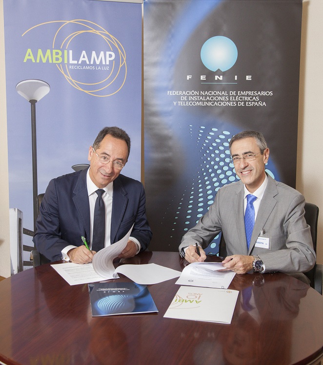 AMBILAMP, Asociación para el Reciclaje de Iluminación, y FENIE, Federación Nacional de Empresarios de Instalaciones Eléctricas de España, han suscrito un acuerdo de colaboración para garantizar el reciclado de los aparatos de iluminación de los asociados de FENIE. De esta manera, dichos asociados pueden cumplir con las obligaciones que fija la normativa sobre reciclaje de aparatos eléctricos y electrónicos.