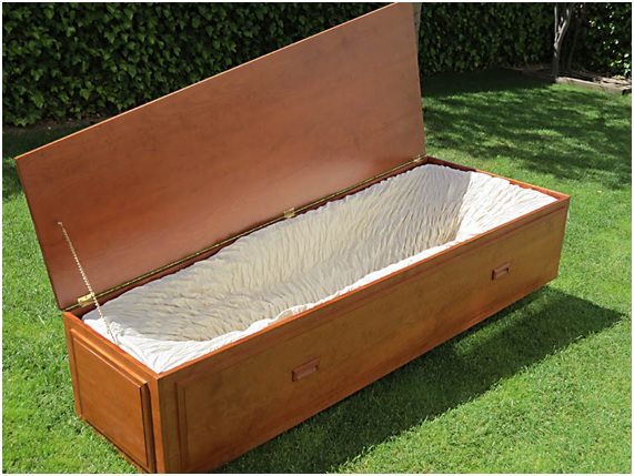 Para aquellos interesados los ataúdes más tradicionales, no hay por que recurrir a los de caoba, que es un árbol de la selva tropical en peligro de extinción. En cambio, es posible optar por féretros hechos de madera de fuentes sostenibles, fabricados por ejemplo con un 80% de residuos de madera y el restante 20 % de madera certificada, con un forro interno de algodón biodegradable.