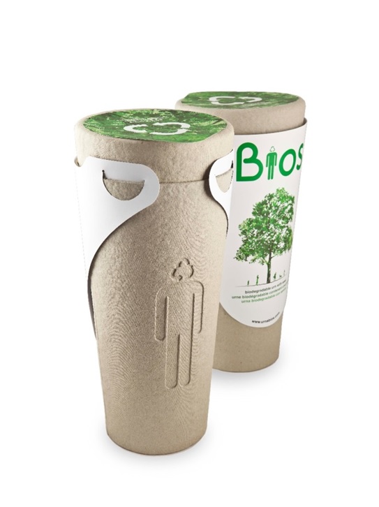 La empresa Bios Urna ha creado una urna biodegradable, diseñada para albergar una semilla de árbol junto a las cenizas. Una vez que la urna está enterrada, el árbol empieza a crecer y la urna se descompone, de manera que finalmente toda la estructura se convierte en parte del sub-suelo y en fertilizantes para el árbol.