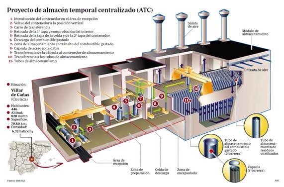 ATC en realidad solo hay uno en todo el mundo y se encuentra en Nuevo México. Los costos de edificación son astronómicos y ni hablemos de lo que saldría el traslado de todo el material que actualmente está en las centrales nucleares tras la construcción de este almacén o los que desde la década de los 70 y 80, España envió a otros países (Francia e Inglaterra) y de los que deberá hacerse cargo en breve.