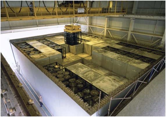 Los haces de uranio enriquecido producto de la fisión nuclear, se sumergen en agua (que actúa como refrigerante) dentro de un recipiente a presión llamado Almacén Temporal Individual (ATI) o en grandes piscinas, con el fin de que la radiación que siguen emitiendo no contamine el medio ambiente y pueda dañar a las personas.
