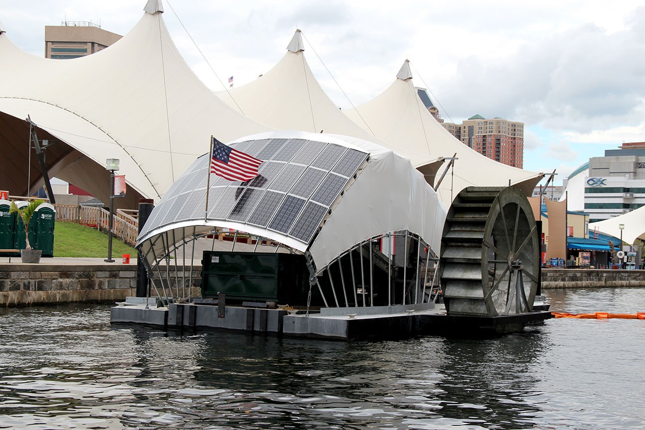 El puerto de Baltimore está más limpio de que ha estado en las últimas décadas y todo ello se ha conseguido con una máquina ecológica, que emplea una rueda para impulsarse con la fuerza del agua y en caso de necesitar energía adicional, la obtiene de paneles solares.