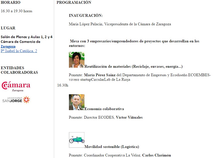 Evento relacionado con el emprendimiento y la economía circular, que tendrá lugar el próximo día 25 de octubre, en la Sede de la Cámara de Comercio, y que se encuadra dentro del marco de la Semana de la Persona Emprendedora en Aragón.