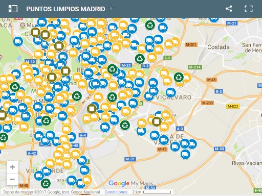 Además de estos puntos limpios de proximidad, existen 16 puntos fijos municipales en Madrid, que dan servicio a los 21 distritos de la ciudad y 330 puntos limpios móviles. En este mapa facilitado por el Ayuntamiento puedes consultar la ubicación de todos los puntos limpios de la capital: