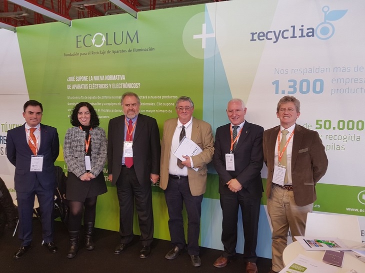 NUEVA NORMATIVA 2018”. Derivó en un formato de mesa redonda donde participó no solamente ECOLUM como principal representante de los SCRAP (Sistemas Colectivos de Responsabilidad Ampliada de Productor) sino varios representantes de los instaladores, así como productores, distribuidores y otros agentes del sector del alumbrado y del material eléctrico.
