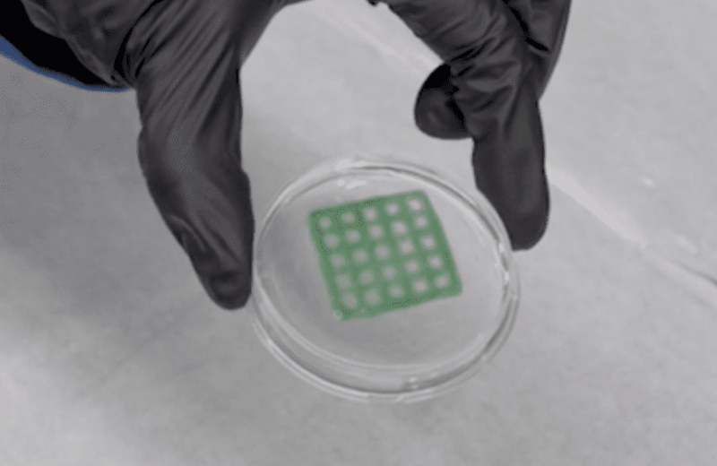 La mezcla se introdujo en una impresora 3D. Después de probar varias geometrías impresas en 3D, los investigadores descubrieron que una estructura en forma de rejilla era óptima para mantener vivas a las bacterias.