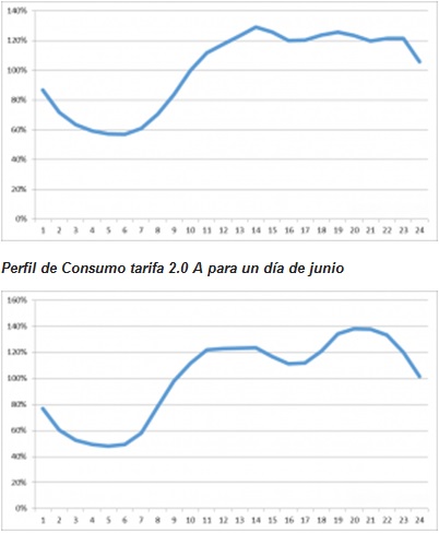 Perfil de Consumo tarifa 2.0 A para un día de diciembre.
