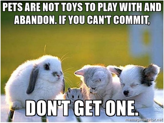 Las mascotas no son juguetes para entretenerse con ellos y abandonarlos. Si no puedes comprometerte, no tengas una.