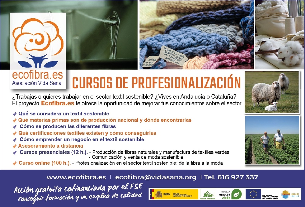 Para dar respuesta a estos problemas nace el proyecto Ecofibra.es. Es un proyecto que se desarrolla dentro del Programa Empleaverde de la Fundación Biodiversidad del Ministerio de Agricultura y Pesca, Alimentación y Medio Ambiente, cofinanciado por el Fondo Social Europeo. Y se dirige a autónomos, emprendedores o trabajadores de empresas que trabajan o quieren trabajar en el sector textil sostenible ya sea desde la producción de fibras naturales, la manufactura de textiles, el diseño con textiles naturales manufacturados en España o la comercialización.