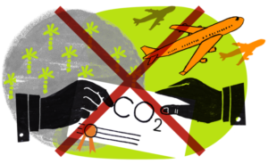 La actual estrategia de mitigación que consistente en utilizar compensaciones es una solución falsa impulsada por el sector del transporte aéreo y sus reguladores controlados por el sector 15. Las líneas aéreas y los aeropuertos confían sobre todo en la engañosa promesa de que, en lugar de reducir las emisiones, pueden compensarlas mediante la adquisición de créditos de carbono, como es el caso de los proyectos de reforestación o las presas hidroeléctricas que se supone permiten ahorrar emisiones.