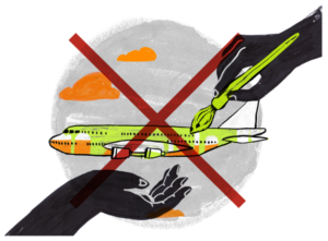 El problema de la aviación forma parte de un amplio relato de injusticia: va en contra de la eliminación del uso de combustibles fósiles; está relacionado con los intereses militares e industriales y con la excesiva influencia de las grandes empresas en las políticas públicas en materia comercial, económica y climática.