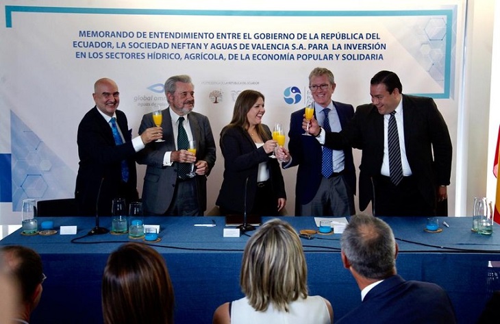 El acuerdo presentado en Valencia está amparado en el concurso que Global Omnium/Aguas de Valencia ganó en 2015 en Ecuador, por el cual se convirtió en socio estratégico de la Empresa Pública del Agua (EPA) para participar en los procesos públicos futuros que llevase a cabo la empresa ecuatoriana.