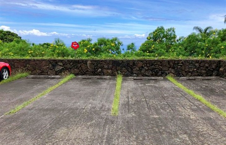En lugar de usar pintura para delimitar las plazas, en este estacionamiento de Kailua-Kona, Hawai, las plantan.